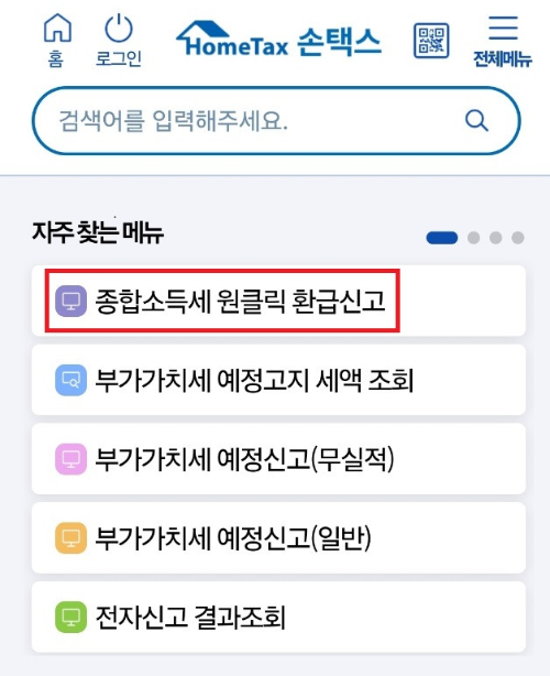 3. 검색창에 ‘원클릭 환급’ 입력 후 해당 메뉴 클릭