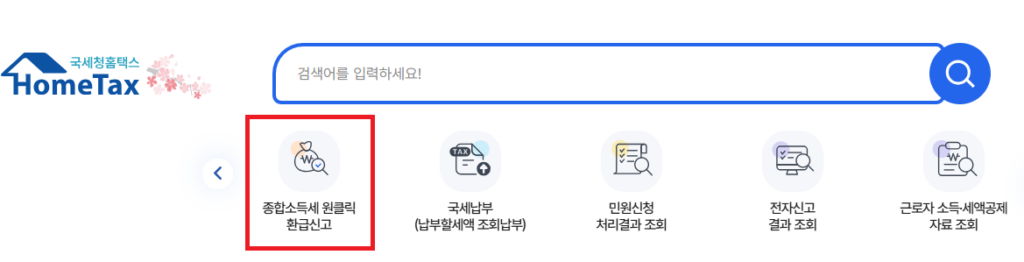 3. 메인화면에서 ‘종합소득세 원클릭 환급 신고’ 메뉴 선택